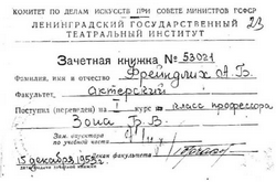 Зачетная книжка студентки Фрейндлих Алисы Бруновны: (нажмите для увеличения)
